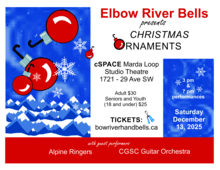 The Elbow River Bells (ERB) from the Bow River Handbell Musicians Society of Calgary will be sharing some of their favourite Christmas repertoire in this 2nd Annual ORNAMENTS concert. ERB will be performing and sharing the stage with guests: The Classical Guitar Society of Calgary's Guitar Orchestra and The Alpine Ringers.